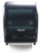 The unit accepts jumbo roll towels up to 8" diameter by 8" wide with a 1 ½" core or larger, ensuring compatibility with standard commercial paper producers and avoiding proprietary paper contracts. Each pull delivers a pre-measured 11" towel length, leaving a 3.5" stub ready for the next use. If needed, the side knob allows manual advancement of the roll.