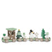 All aboard for holiday fun with this small train set featuring cheerful snowmen and festive Christmas trees. Designed in soft pastel tones, this 9-inch-long train is full of seasonal charm and makes a whimsical accent for mantels, tabletops, or shelves. A miniature winter wonderland on tracks, it pairs perfectly with larger train sets for a coordinated holiday display.