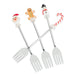 Add festive flair to your holiday entertaining with this set of four Holiday Icon Cocktail Forks. Each metal fork features a whimsical glass topper — Santa, a gingerbread man, a snowman, and a candy cane — adding a cheerful touch to your appetizers, desserts, and charcuterie boards. Perfect for seasonal gatherings or as a thoughtful hostess gift, these forks bring both fun and elegance to your holiday table.